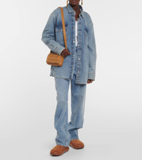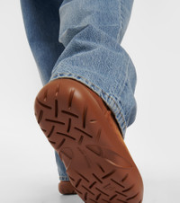 Made in Italy, these ankle boots from Bottega Veneta are made with light brown suede. They have a round-toe silhouette, shearling lining, and a rubber sole, finished by a rubber triangle patch with a logo at the heel. Product Details - Upper: leather - Lining: shearling - Sole: shearling insole, rubber sole - Toe shape: round toe - Made in Italy - Includes: dust bags - Designer color name: Caramel - Comes with a box - Item number: P00861372 Size & Fit - True to size - Wide - Half sizes please take the next size up - European sizes - 3,5cm-1.5" platform (size EU 38)