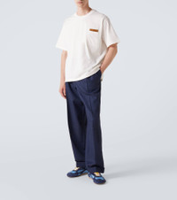This Bottega Veneta T-shirt is expertly Italian-crafted from pure cotton jersey into a relaxed silhouette. It's finished with washable, brand-iconic Intrecciato suede detailing. Product Details - Material: 100% cotton - Care instructions: hand wash - Made in Italy - Designer color name: Chalk - Item color: white - Trim: 97% cotton, 3% elastane - Embroidery: 100% polyester - Details: 100% cow leather - Contains non-textile parts of animal origin - Collar: crewneck - Pockets: angled chest pocket - Item number: P01059689 Size & Fit - True to size - Dropped shoulders - Designed for a loose fit - Slightly stretchy fabric - Falls to the hip - The model in the picture is 185cm-6'1" and wearing a size L - Height of model is 189cm-74.5" and wears a size L