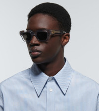 These Unapologetic sunglasses from Bottega Veneta have a square-shaped frame and tinted lenses. Made from transparent acetate, they feature wide temples with gold-toned hardware. Product Details - Frame color: gold, transparent - Frame material: acetate - Lens color: grey - comes with cleaning cloth - comes in a logo-embossed hard case - The color of the case may vary - Lens filter category 3 - Made in Japan - Item number: P00805395 Size & Fit - Lens width: 49mm-1.95" - Bridge size: 23mm-0.9" - Earpiece length: 140mm-5.5"