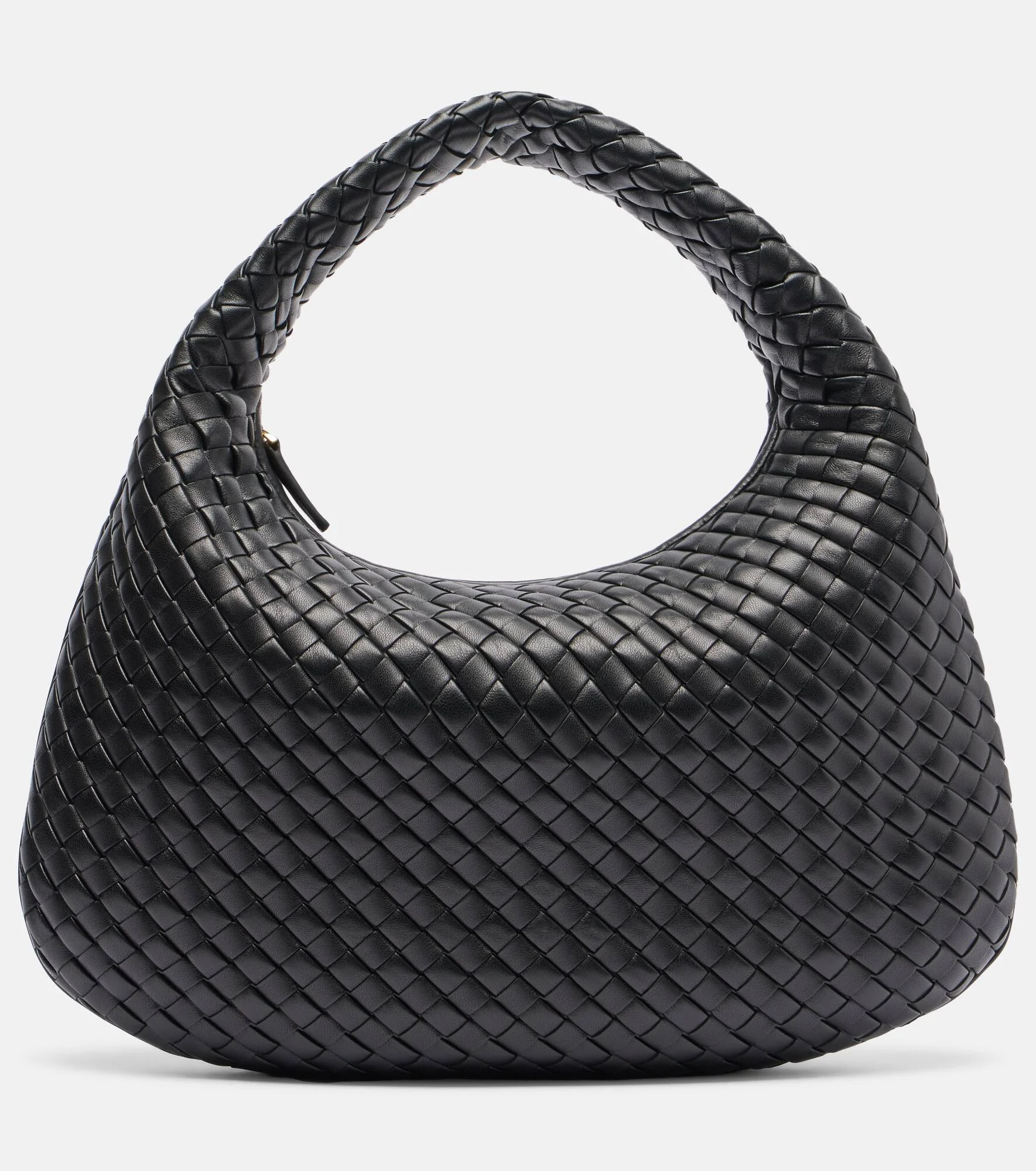 Developed in the 1970s, Bottega Veneta's artful Intrecciato technique guarantees the longevity of its leather goods. Featuring the iconic weave, the Veneta Medium shoulder bag is complete with gold-toned hardware and an internal slot pocket. Product Details - Material: leather - Lining: suede - Made in Italy - Designer color name: Black-M Brass - Item color: black - Hardware color: gold - Closure: zipped top - Top handle - Internal details: internal slot pocket - Item number: P01117825 Size & Fit - Height 30cm-12" - Width 44cm-17.5" - Depth 8cm-3" - Length of handle 45cm-17.5"