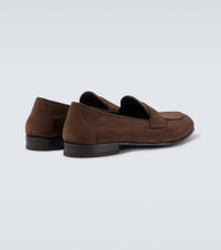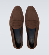 Step out in style with the Appia penny loafers from Brioni. They're expertly handcrafted in Italy from leather into a timeless, classic silhouette. Product Details - Upper: leather (suede) - Lining: leather - Sole: leather insole and sole - Toe shape: almond toe - Handmade in Italy - Includes: shoe box, dust bags - Designer color name: Coffee - Item color: brown - Item number: P01048032 Size & Fit - Fits slightly large to size - we recommend trying a half size smaller - UK sizes
