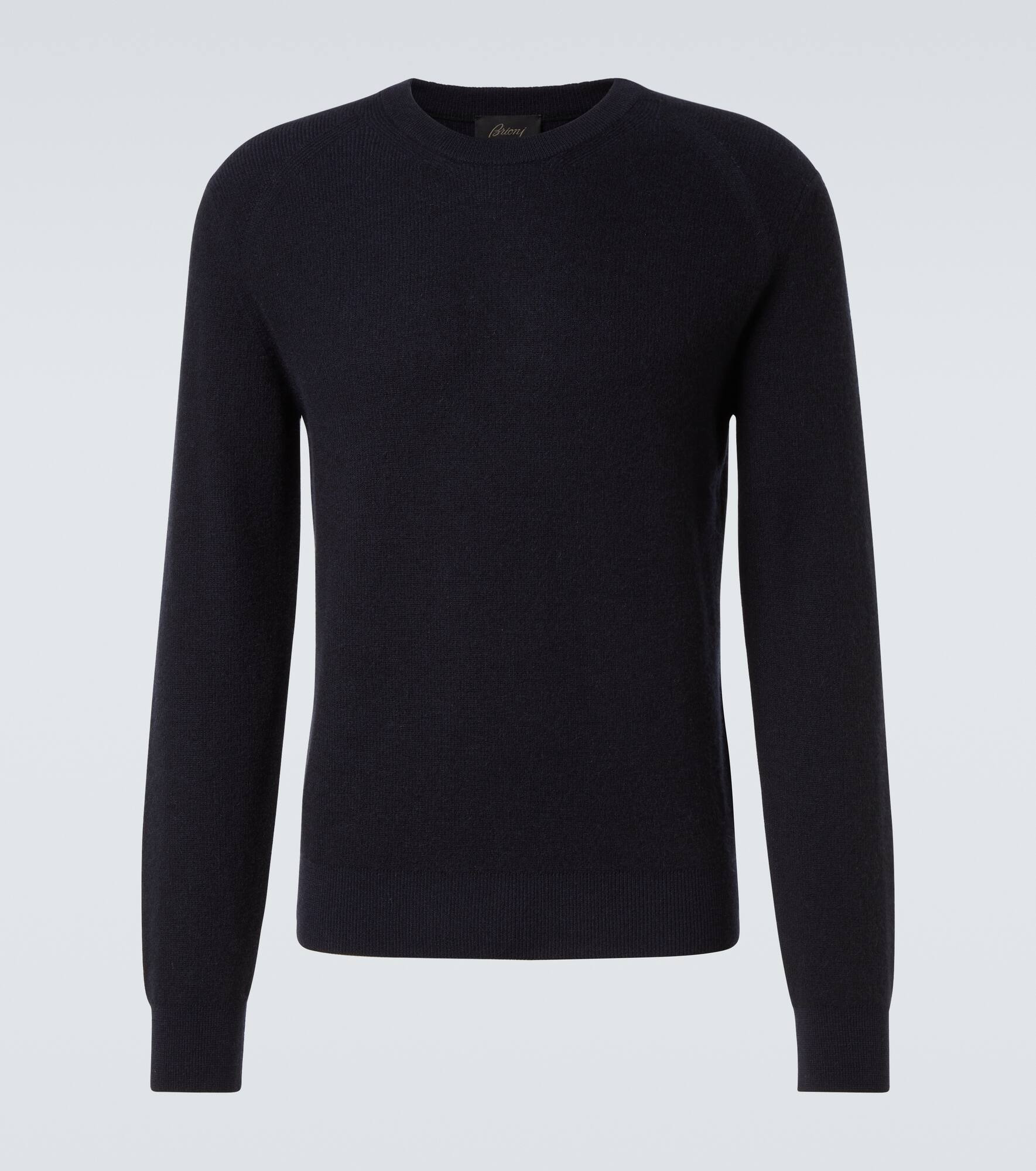 This sweater from Brioni is a wardrobe staple for ultimate minimalism and refinement, embodying the brand's Italian craftsmanship. Made from cashmere and wool, this piece is designed with a relaxed silhouette and a classic crewneck. Product Details - Material: 64% cashmere, 36% wool - Care instructions: dry clean - Made in Italy - Designer color name: Navy/Black - Item color: blue - Collar: crewneck - Cuff: ribbed - Hem: ribbed - Item number: P01048066 Size & Fit - True to size - Straight fit - Stretchy fabric - Falls to the hip - Height of model is 192cm-75.5" and wears a size IT 50