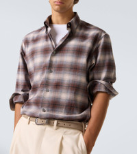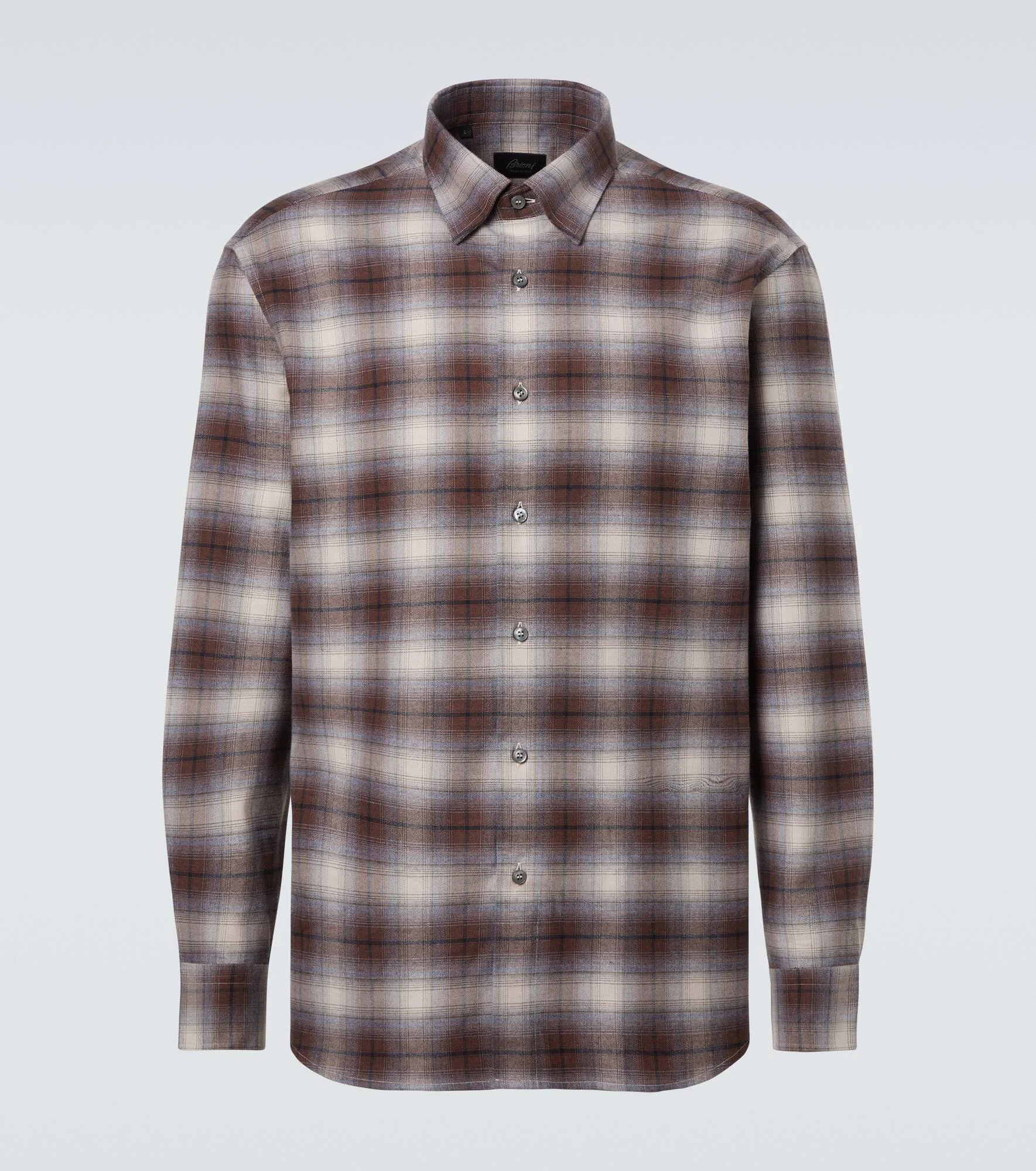 The epitome of Italian sartorial excellence, Brioni was founded in Rome in 1945 and remains firmly rooted in its birthplace. This shirt is made from cotton flannel and designed with a relaxed silhouette and a checked motif. Product Details - Material: 100% cotton - Care instructions: machine wash at 30 degrees - Made in Italy - Designer color name: Brown/White - Item color: brown, white - Contains non-textile parts of animal origin - Collar: classic (Straight point) - Cuff: buttoned - Closure: buttoned placket - Item number: P01048069 Size & Fit - True to size - For a closer fit, we recommend taking one size down - Without pleats in the back - Designed for a loose fit - Non-stretchy fabric - Falls below the hip - The model in the picture is 185cm-6'1" and wearing a size L