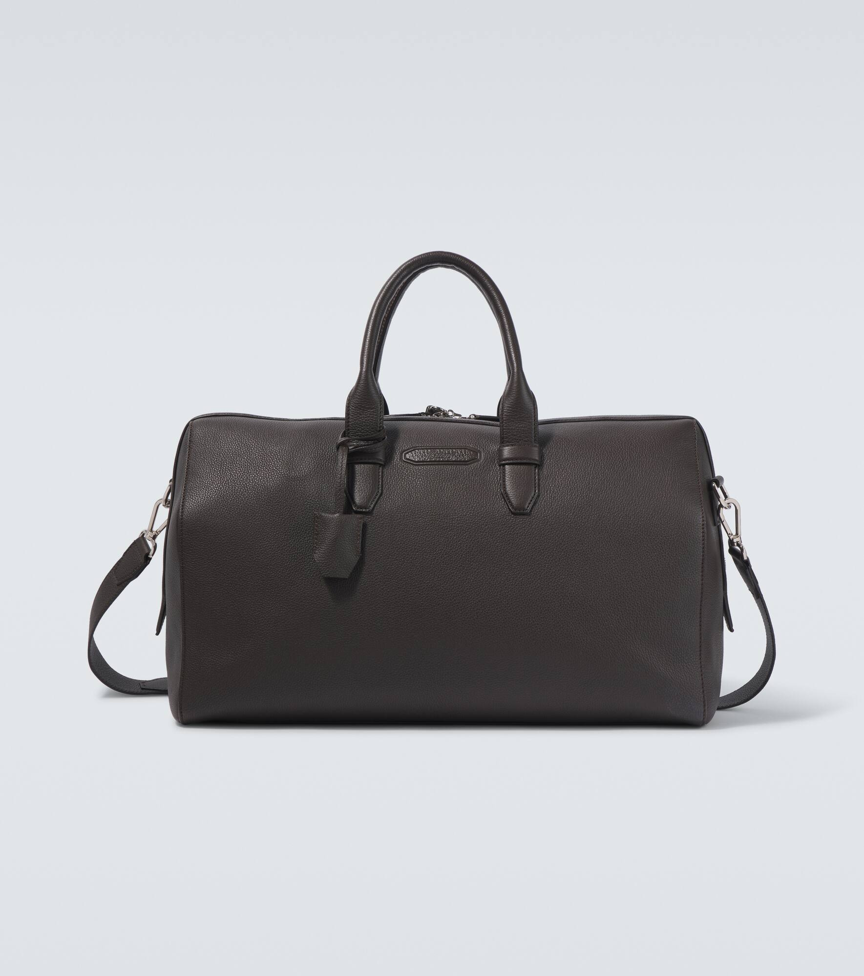 Ideal for short getaways, this duffel bag from Brioni is an elegant accessory for on-the-go style. Crafted from supple grained leather with a spacious interior and a detachable strap, it showcases the brand's meticulous quality. Product Details - Material: leather - Lining: fabric - Made in Italy - Designer color name: Dark Brown - Item color: brown - Internal details: single compartment, internal zipped pocket - Closure: two-way zipped top - Top handles, Detachable, adjustable shoulder strap - Color of fastening: silver - Hardware color: silver - Item number: P01048039 Size & Fit - Height 30cm-12" - Width 50cm-19.5" - Depth 22,5cm-9" - Length of handles 47cm-18.5" - Adjustable shoulder strap - Max. length shoulder strap 132cm-52"