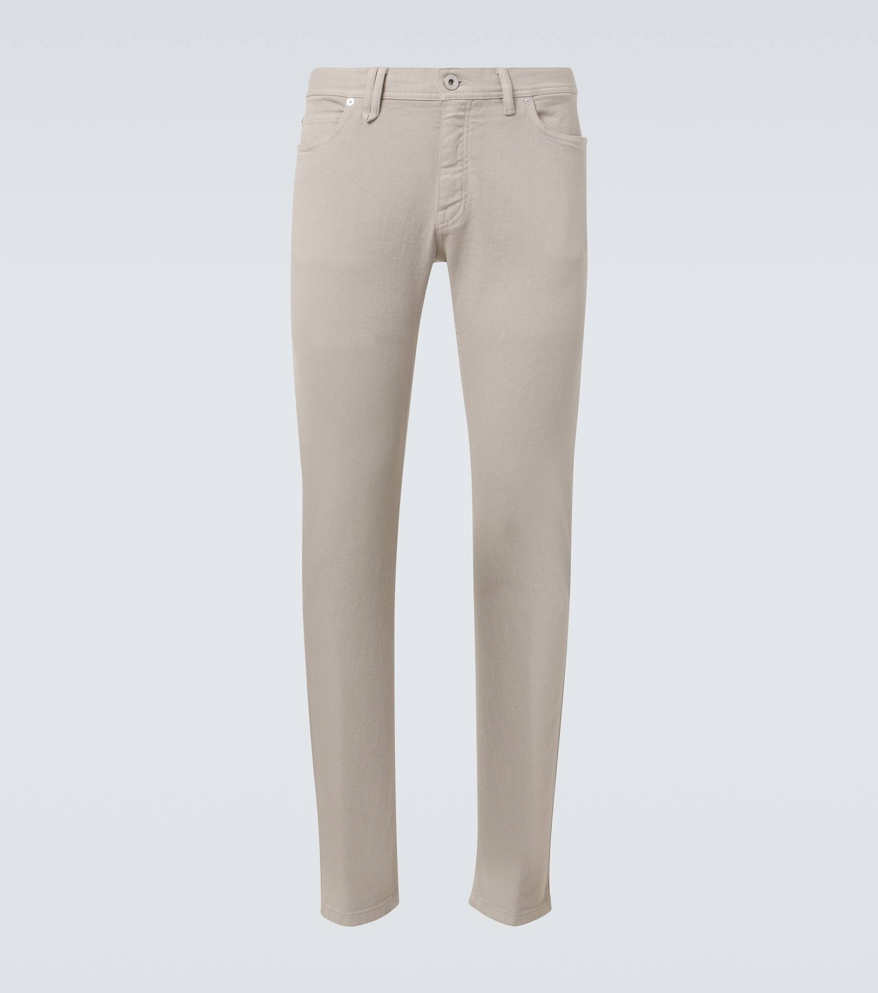 Product Details - Material: 98% cotton, 2% elastane - Care instructions: machine wash - Made in Italy - Designer color name: Sand - Item color: beige - Closure: zipper fly, button fastening - Pockets: five pockets - Mid-rise - Dye: light - Contains non-textile parts of animal origin - Item number: P01048014 Size & Fit - True to size - Slightly stretchy fabric - Skinny leg - Low-rise - The model in the picture is 185cm-6'1" and wearing a size 32