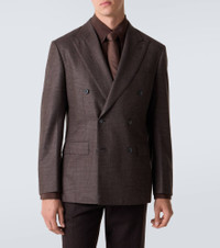This Brioni blazer showcases the brand's commitment to meticulous craftsmanship and attention to detail. Crafted in Italy from pure wool, the garment is tailored to a double-breasted silhouette and finished with a Prince of Wales check. Product Details - Material: 100% wool - Care instructions: dry clean - Made in Italy - Designer color name: Brown - Item color: brown - Lining: 100% cupro - Lining II: 100% cotton - Contains non-textile parts of animal origin - Peak lapel - Cuff: four buttons - Pockets: breast pocket, flap pockets, internal pockets - Closure: double-breasted (six buttons) - Vent: double - Item number: P01048061 Size & Fit - True to size - Shoulder pad inserts - Regular fit - Non-stretchy fabric - Falls below the hip - slit length 25cm-10" - The model in the picture is 185cm-6'1" and wearing a size IT 50