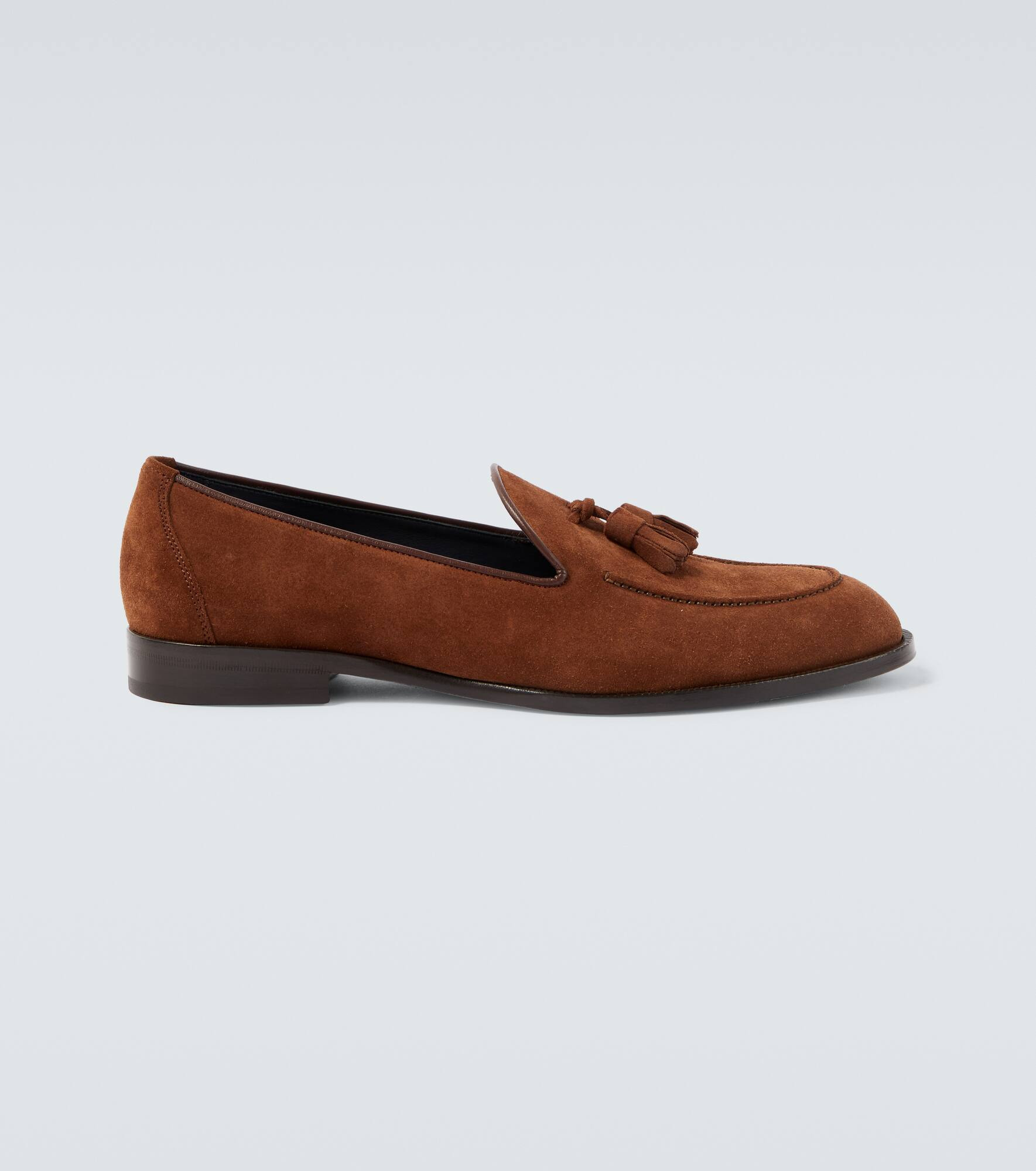 The epitome of Italian sartorial excellence, Brioni was founded in Rome in 1945. These loafers are crafted in Italy from smooth suede, featuring an elegant almond toe and classic tassels on the uppers. Product Details - Upper: leather (suede) - Lining: leather - Sole: leather insole and sole - Toe shape: almond toe - Made in Italy - Includes: dust bag, shoe box - Designer color name: Brown - Item color: brown - Item number: P01048070 Size & Fit - True to size - UK sizes