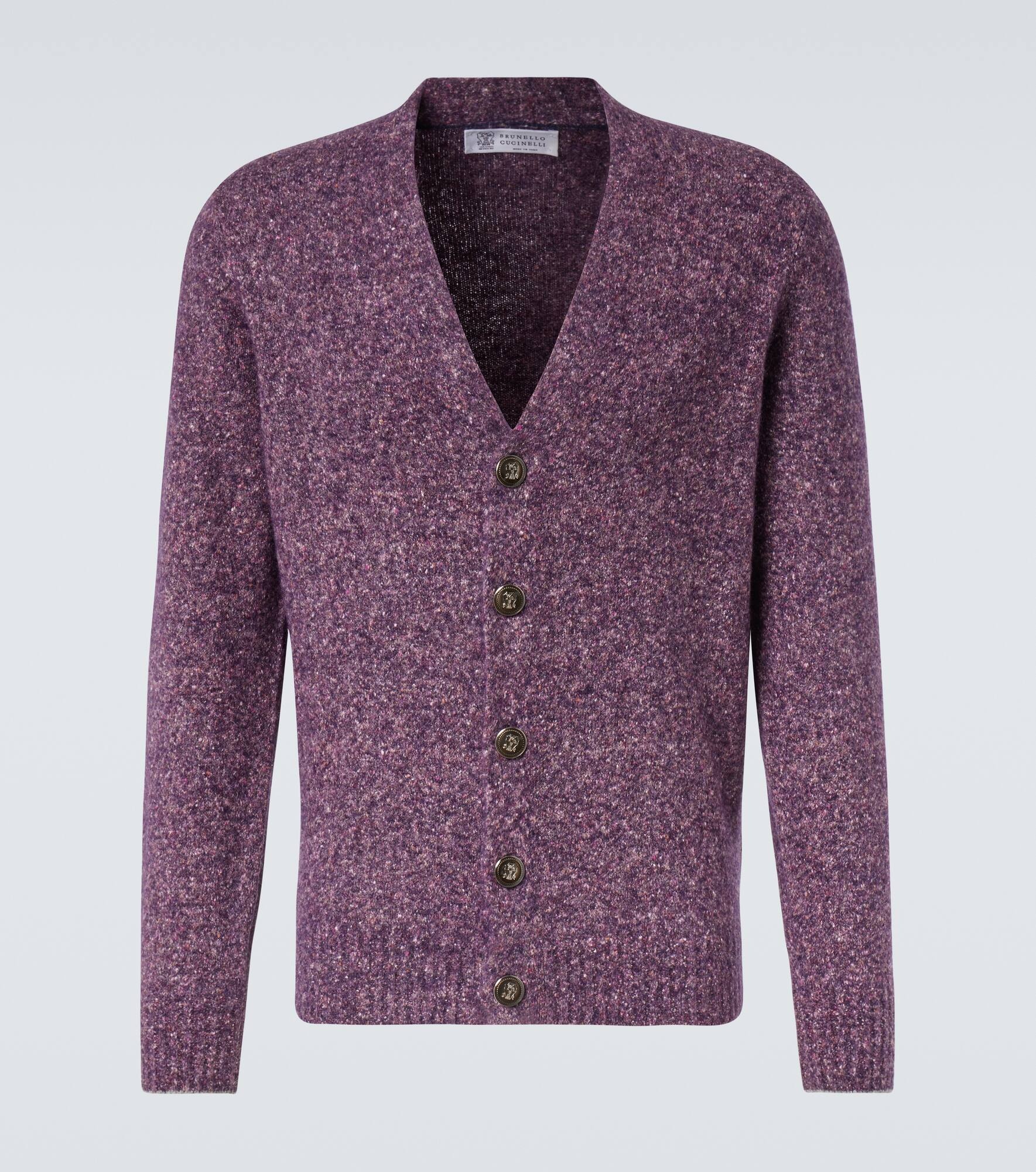 This Brunello Cucinelli cardigan is crafted from a blend of alpaca, wool, silk, and cotton tweed, offering a soft and sophisticated feel. The warm piece is finished with a distinctive metal buttoned closure. Product Details - Material: 36% alpaca wool, 25% polyamide, 13% wool, 13% silk, 10% cotton, 3% viscose - Care instructions: hand wash - Made in Italy - Designer color name: Cpz88 - Item color: purple - Closure: buttoned front - Item number: P01056019 Size & Fit - True to size - Designed for a loose fit - Stretchy fabric - Falls to the hip - Height of model is 189cm-74.5" and wears a size IT 50