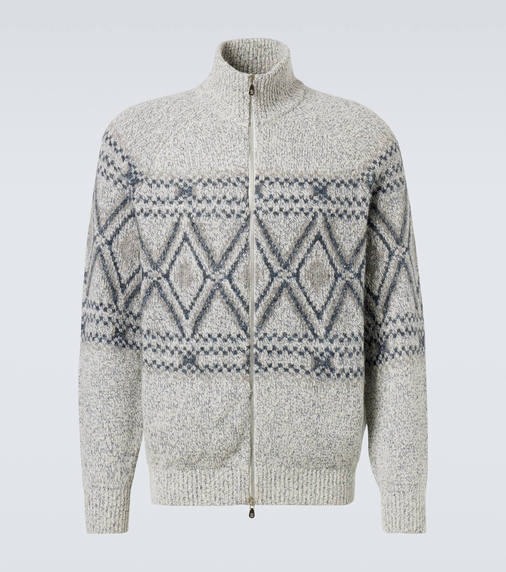 Fair Isle Wool, Silk and Cashmere-Blend Zip-Up Cardigan Gray
