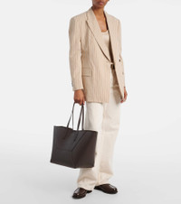 Brunello Cucinelli reimagines the everyday tote with the BC Duo bag, crafted from soft leather and defined by a geometric silhouette. This Medium design showcases minimal lines enhanced by bold stitch detailing, and monili-embellished trims for a signature touch. Product Details - Material: leather - Lining: suede - Made in Italy - Designer color name: Testa Di Moro - Item color: brown - Top handles - Hardware color: silver - Closure: magnetic fastening - Internal details: internal pouch - Item number: P01038079 Size & Fit - Height 30cm-12" - Max. width 50cm-19.5" - Max. depth 21,5cm-8.5" - Length of handles 52cm-20.5" - Clutch height 14,5cm-5.5" - Clutch width 23cm-9"