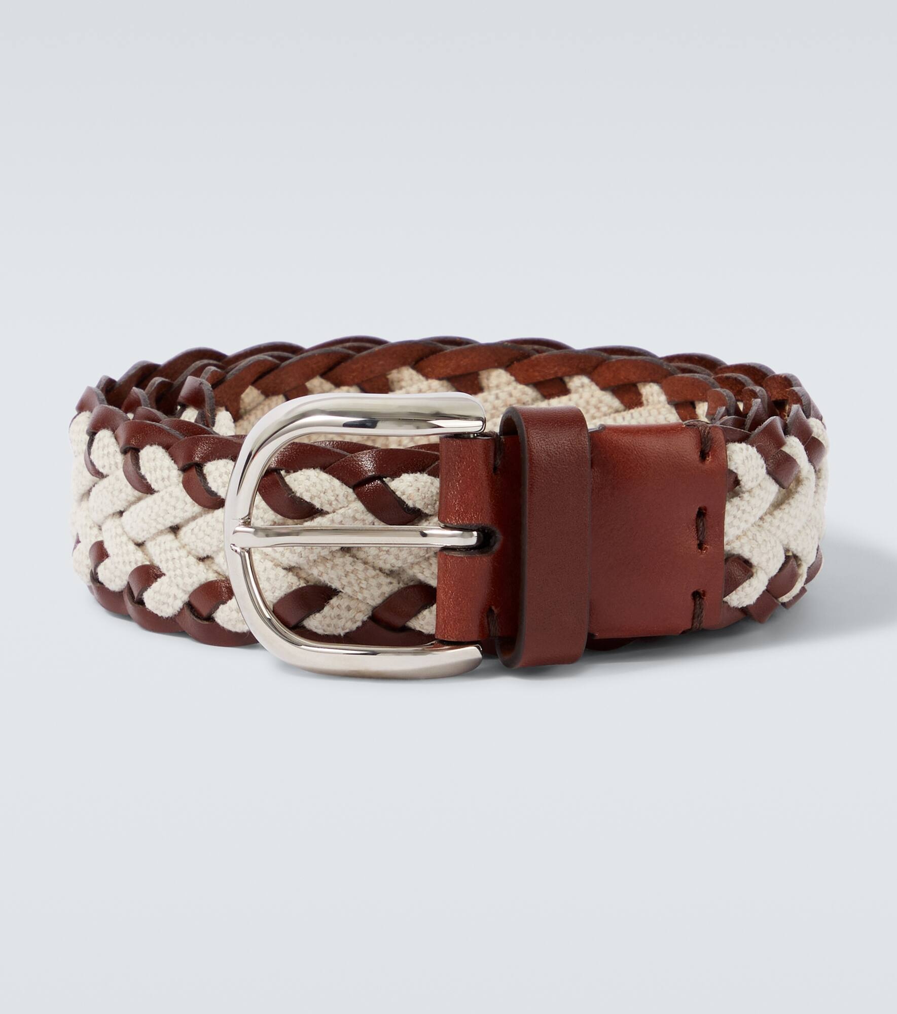 Brunello Cucinelli's designs are created in Solomeo, a medieval hamlet whose art and traditions are woven into the house's every fiber. Made from leather and canvas, this braided belt is a chic addition to every look. Product Details - Material: leather, fabric - Lining: leather, fabric - Made in Italy - Designer color name: Brown Beige - Item color: brown, beige - Includes: dust bag, box - Item number: P01046363 Size & Fit - Width 3.5cm-1.5" - Buckle width 4.5cm-2"