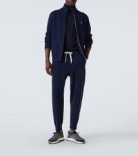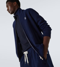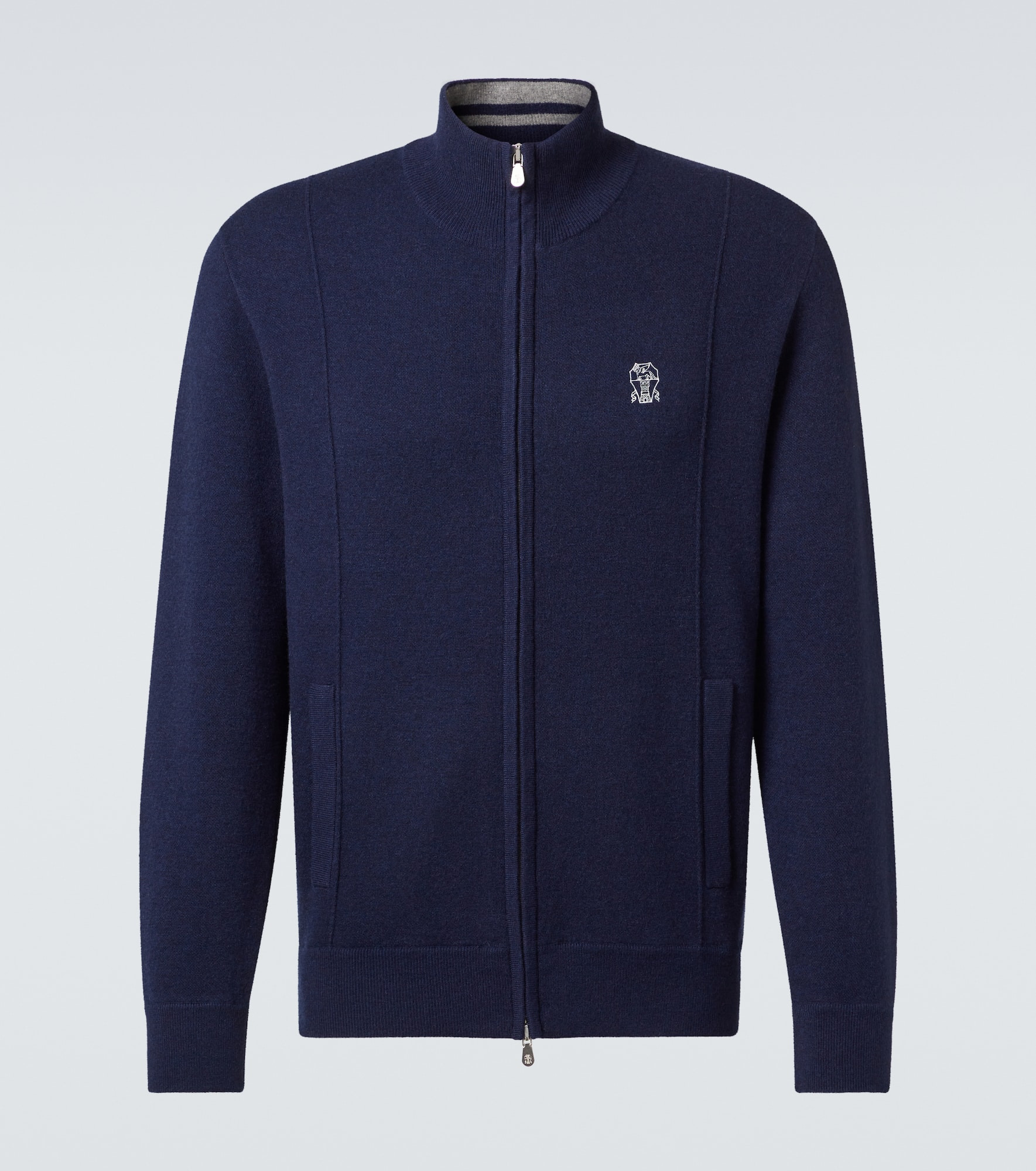 Bring a touch of luxury into your leisure edit with this zip-up sweater from Brunello Cucinelli. The design is crafted from a soft cashmere blend and subtly embroidered with the brand's iconic logo. Product Details - Material: 96% cashmere, 3% polyamide, 1% elastane - Care instructions: hand wash - Made in Italy - Designer color name: Blu Marina/Grigio Chiaro - Item color: blue - Closure: zipped front - Item number: P01056076