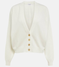 Brunello Cucinelli is known for finely crafted cashmere designs. This timeless cardigan in white has a relaxed fit with a deep V-neckline and dropped shoulder seams. Product Details - Made in Italy - Material: 100% cashmere - Closure: partially buttoned front - Designer color name: Bianco - Care instructions: hand wash - Item number: P00769878 Size & Fit - True to size - Dropped shoulders - Designed for a loose fit - Mid-weight material - Falls to the hip - The model seen in the picture is 178cm-5'10" and wearing a size XS