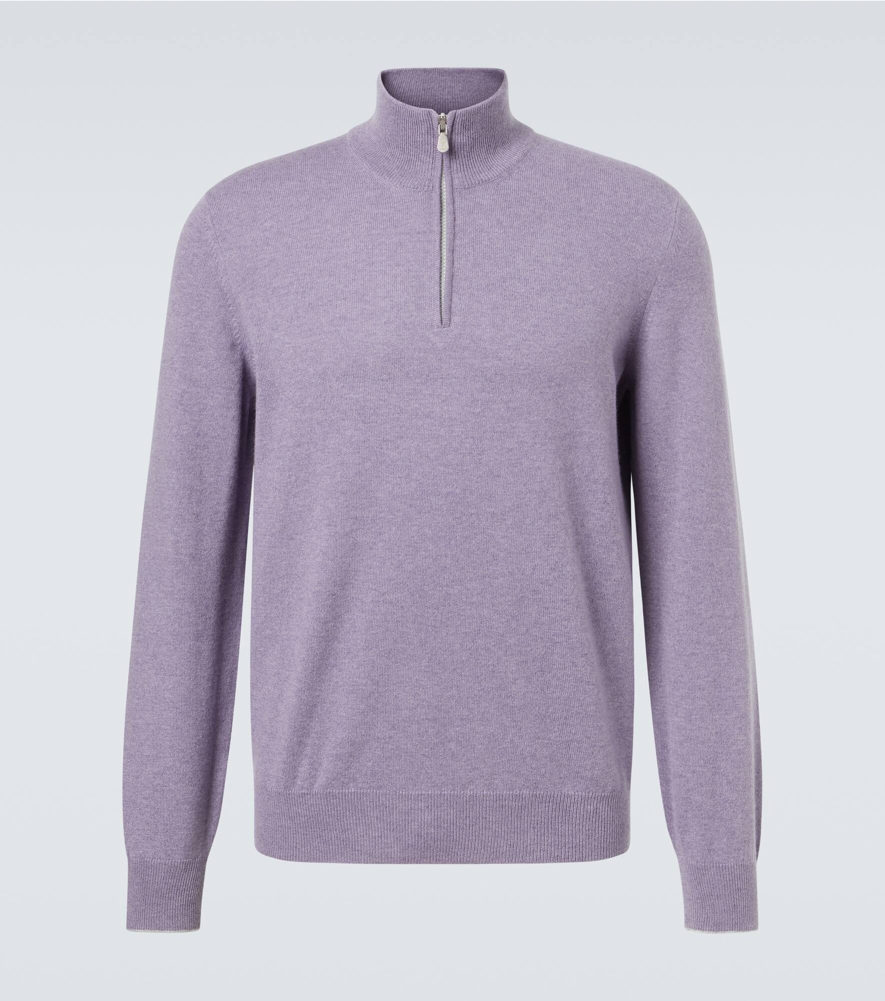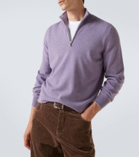 This Brunello Cucinelli sweater blends softness and practicality with ease. Crafted in Italy from pure cashmere, this garment is designed with a half-zip closure and a regular silhouette for a stylish look. Product Details - Material: 100% cashmere - Care instructions: hand wash - Made in Italy - Designer color name: Cbg82 - Item color: purple - Item number: P01056006 Size & Fit - True to size - Designed for a loose fit - Non-stretchy fabric - Falls to the hip - Height of model is 189cm-74.5" and wears a size IT 50