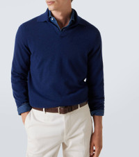 Supreme softness characterizes Brunello Cucinelli's cashmere pieces, which are produced in Italy from the finest fibers. This polo sweater features a regular silhouette and is a go-to for effortless style. Product Details - Material: 100% cashmere - Care instructions: hand wash - Made in Italy - Designer color name: CQC24 - Item color: blue - Item number: P01056009 Size & Fit - True to size - Straight fit - Stretchy fabric - Falls to the hip - Height of model is 189cm-74.5" and wears a size IT 50