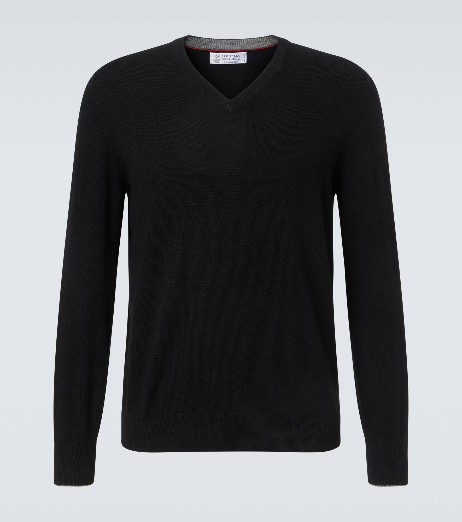This cashmere sweater from Brunello Cucinelli feels like a warm hug during cold months. Crafted in Italy, its design is complete with a V-neckline and a relaxed silhouette for a great variety of looks. Product Details - Material: 100% cashmere - Care instructions: hand wash - Made in Italy - Designer color name: Ch101 - Item color: black - Item number: P01056003 Size & Fit - True to size - Straight fit - Stretchy fabric - Falls to the hip - Height of model is 189cm-74.5" and wears a size IT 50