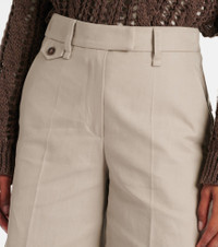Product Details - Material: 76% cotton, 24% linen - Care instructions: dry clean - Made in Italy - Designer color name: Light Desert - Closure: zip, hook, and button fastening - Lining: 36% polyester, 32% acetate, 32% cupro - Pockets: five pockets - Item number: P01016057 Size & Fit - True to size - Elasticated waist - Non-stretchy fabric - Wide-leg - The model seen in the picture is 178cm-5'10" and wearing a size IT 40