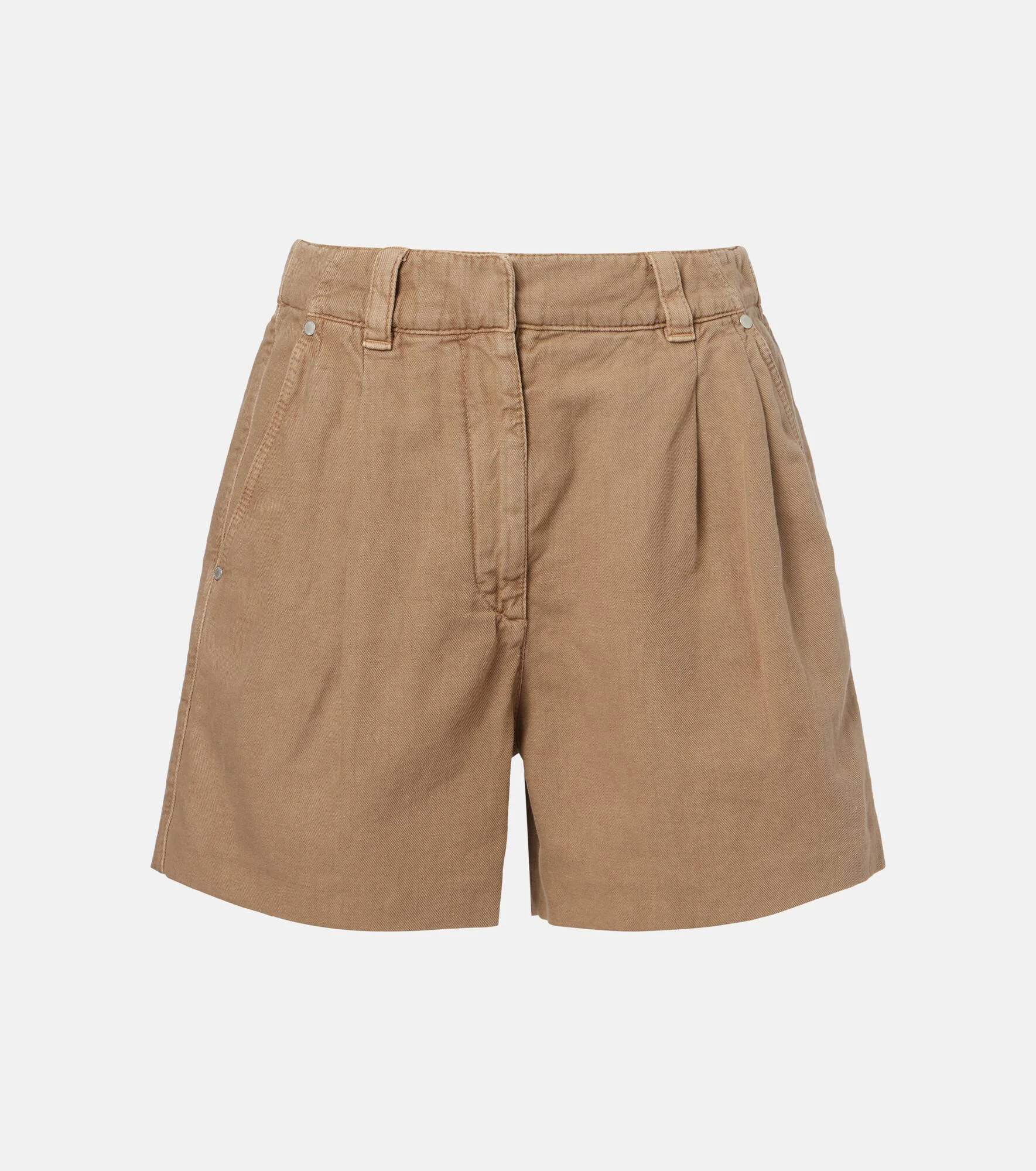 Brunello Cucinelli's designs are created in Solomeo, a medieval hamlet whose art and traditions are woven into the house's every fiber. Carefully crafted from breathable cotton and linen fabric, these Bermuda shorts feature slant pockets and a classic zipper, button, and hook fastening. Product Details - Material: 60% cotton, 40% linen - Care instructions: machine wash at 30 degrees - Made in Italy - Color: beige - Designer color name: Warm Amber - Lining: 100% cotton - Details: 100% brass - Contains non-textile parts of animal origin - Belt loops - Pockets: slant pockets, back pockets - Closure: zipper fly, button and hook fastenings - Item number: P01143627 Size & Fit - True to size - Elasticated waist - Non-stretchy fabric - Wide-leg - High-waisted - The model seen in the picture is 178cm-5'10" and wearing a size IT 40