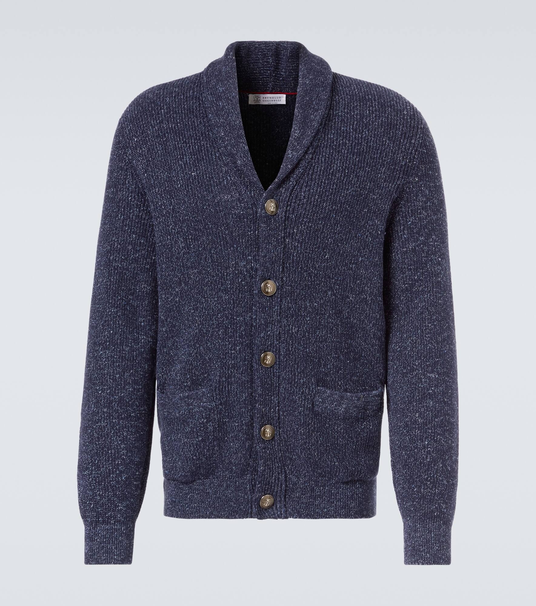 Cotton and linen half English rib chiné cardigan