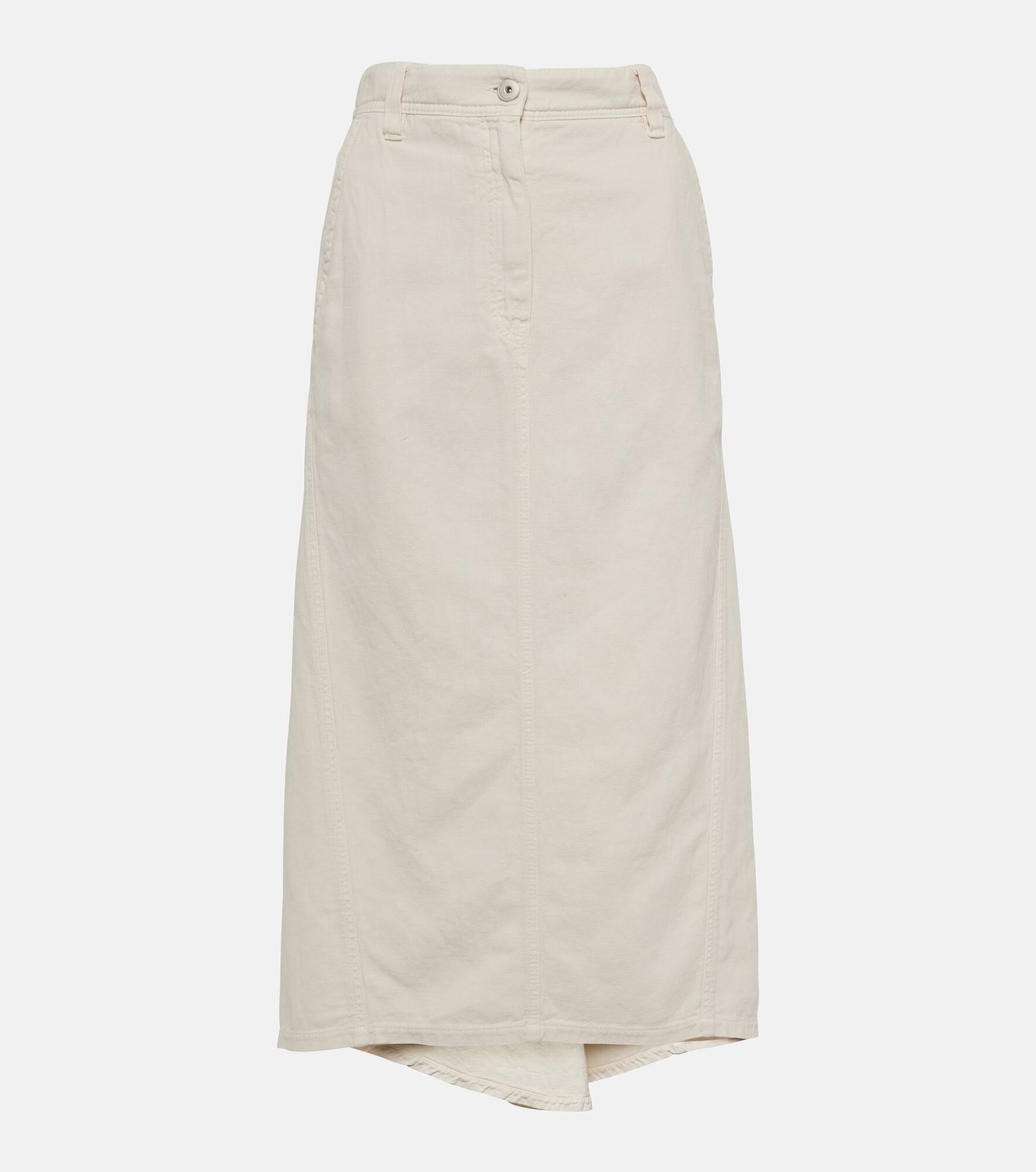 asymmetric denim midi skirt