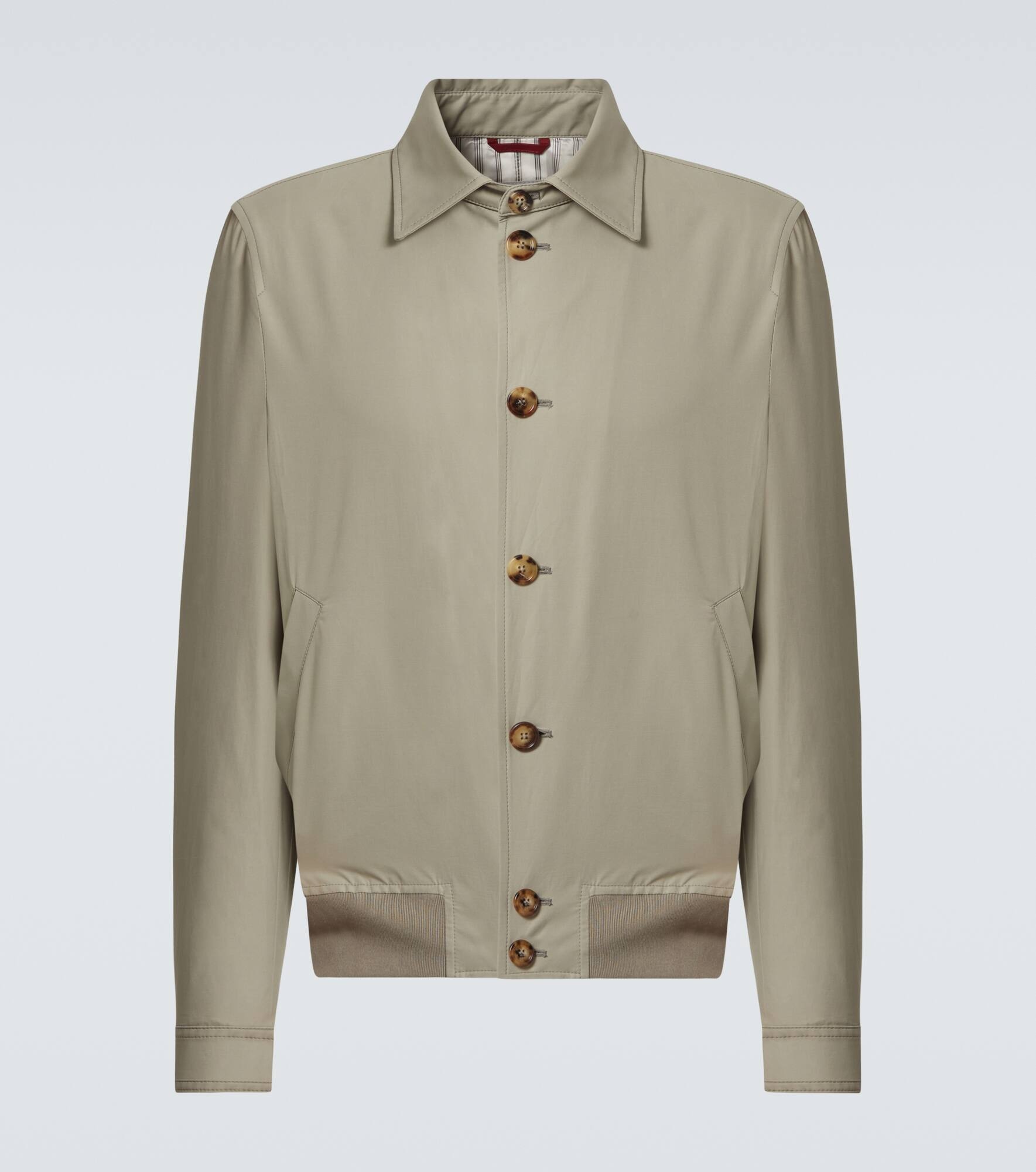 Water-resistant techno cotton gabardine shirt-style bomber jacket