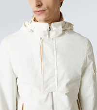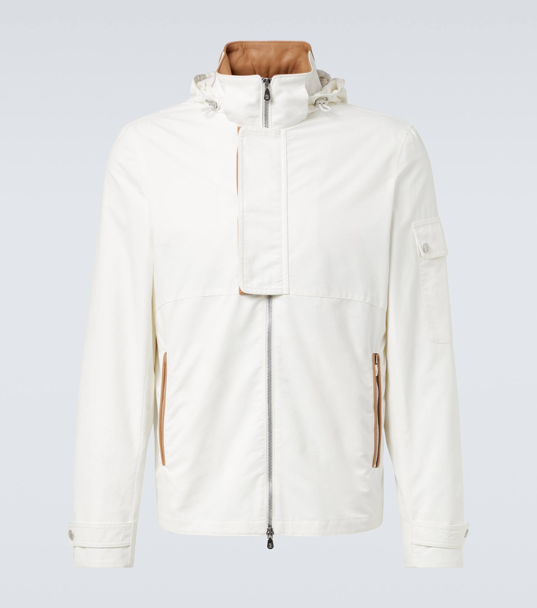 Brunello Cucinelli's designs are created in Solomeo, a medieval hamlet whose art and traditions are woven into the house's every fiber. Crafted from a cotton-blend, this jacket features a detachable drawstring hood as well as a sleeve pocket and zipped pockets. Product Details - Material: 67% cotton, 33% polyamide - Care instructions: specialist clean - Made in Italy - Designer color name: CZM63 - Item color: ivory - Includes: garment bag - Trim: 100% leather - Lining: 100% cupro - Closure: two-way zipped front with snap-button fastenings - Pockets: zipped pockets, sleeve pocket - Contains non-textile parts of animal origin - Snap-buttoned cuffs - Detachable drawstring hood - Item number: P01046342 Size & Fit - True to size - Straight fit - Non-stretchy fabric - Falls to the hip - Height of model is 189cm-74.5" and wears a size IT 50