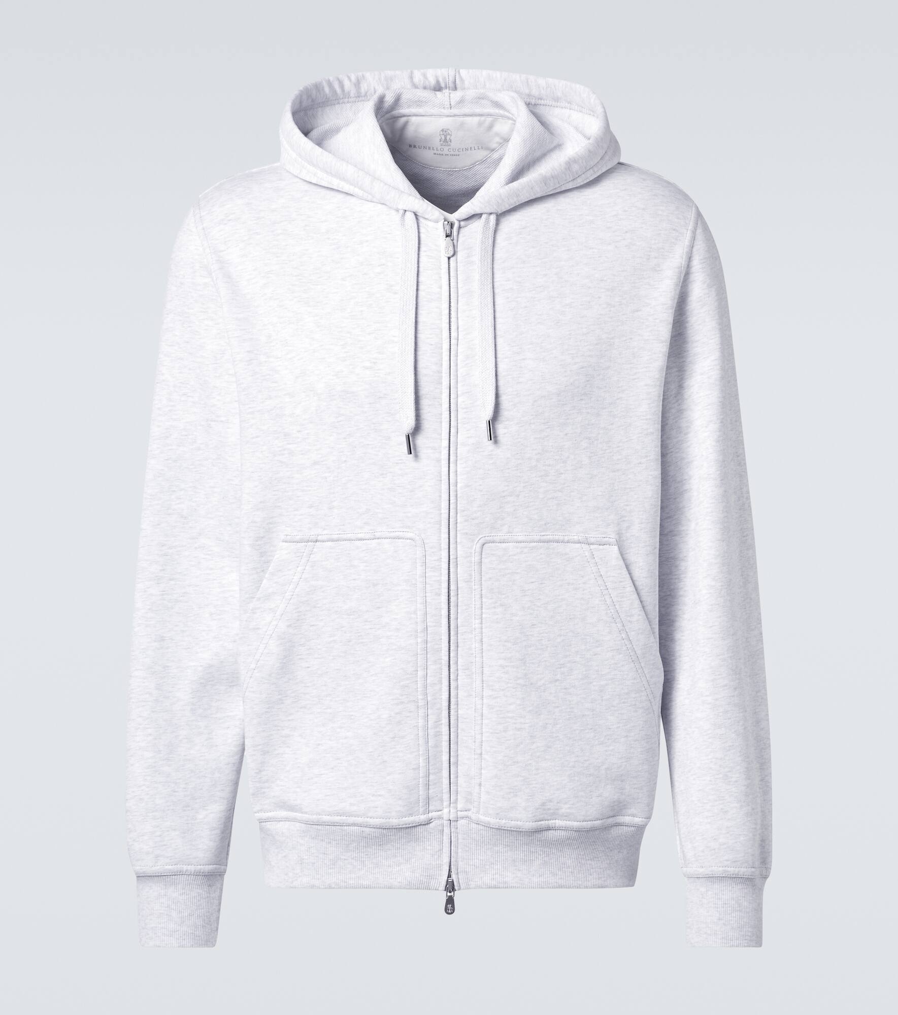 Reach for a soft zip-up hoodie from Brunello Cucinelli when you need a comfortable loungewear piece that still looks good. This design is cut from cotton-blend jersey and has split kangaroo pockets. Product Details - Material: 95% cotton, 5% polyamide - Care instructions: machine wash at 30 degrees - Made in Italy - Designer color name: C3657 - Item color: gray - Material II: 90% cotton, 10% elastane - Material III: 100% cotton - Item number: P01056079 Size & Fit - True to size - Designed for a loose fit - Elasticated hem - Slightly stretchy fabric - Falls to the hip - Height of model is 189cm-74.5" and wears a size L