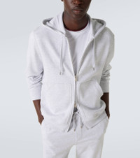 Cotton, cashmere and silk French terry double cloth hooded sweatshirt with zipper