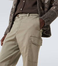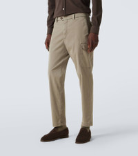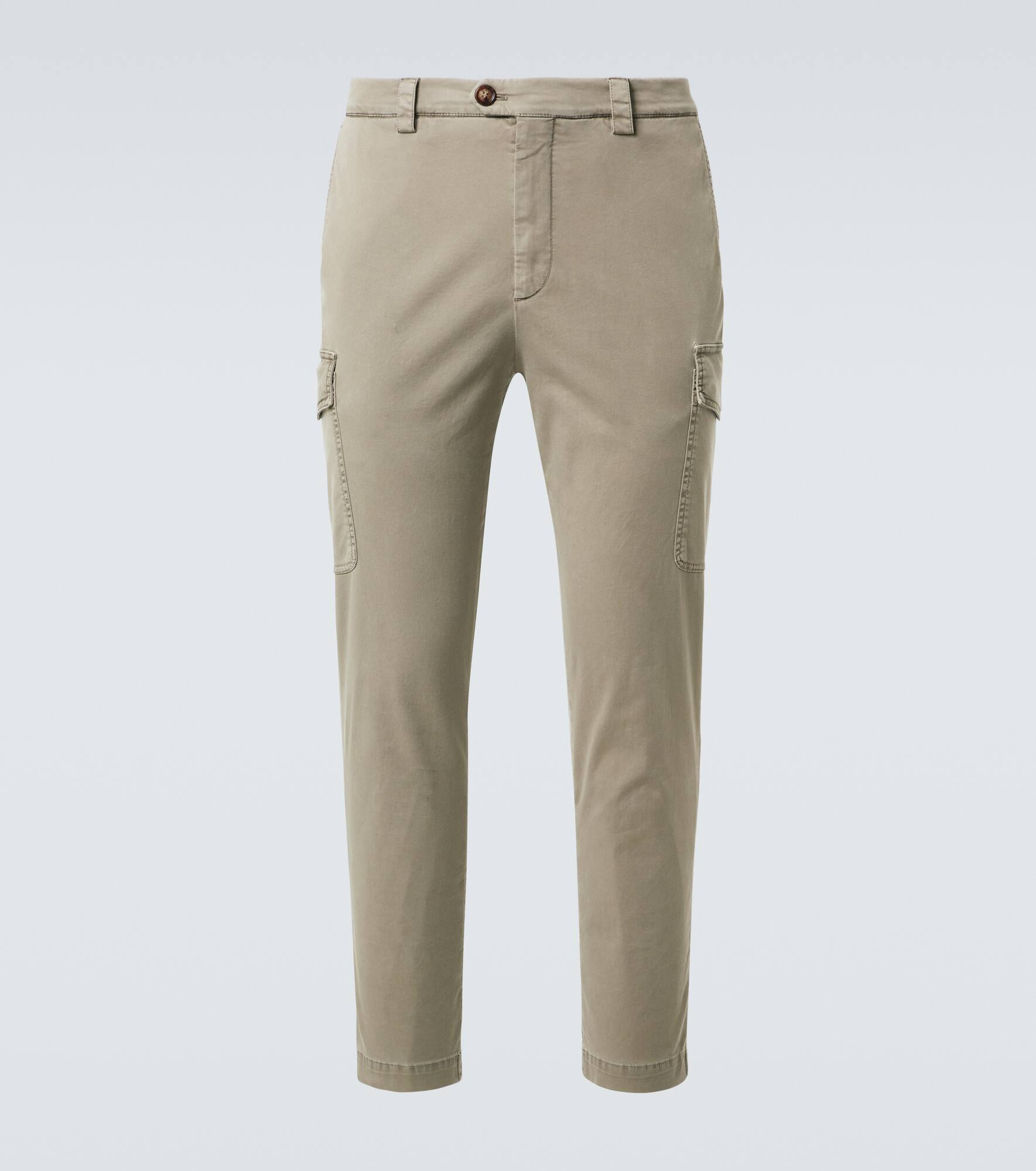 Crafted in Italy from pure cotton, these slim pants feature flap pockets on the sides. Brunello Cucinelli's designs are created in Solomeo, a medieval hamlet whose art and traditions are woven into the house's every fiber. Product Details - Material: 97% cotton, 3% elastane - Care instructions: hand wash - Made in Italy - Designer color name: Kaky old - Item color: beige - Details: 100% water-buffalo horn - Contains non-textile parts of animal origin - Item number: P01056063 Size & Fit - True to size - Slightly stretchy fabric - Slim-leg - The model in the picture is 185cm-6'1" and wearing a size 50