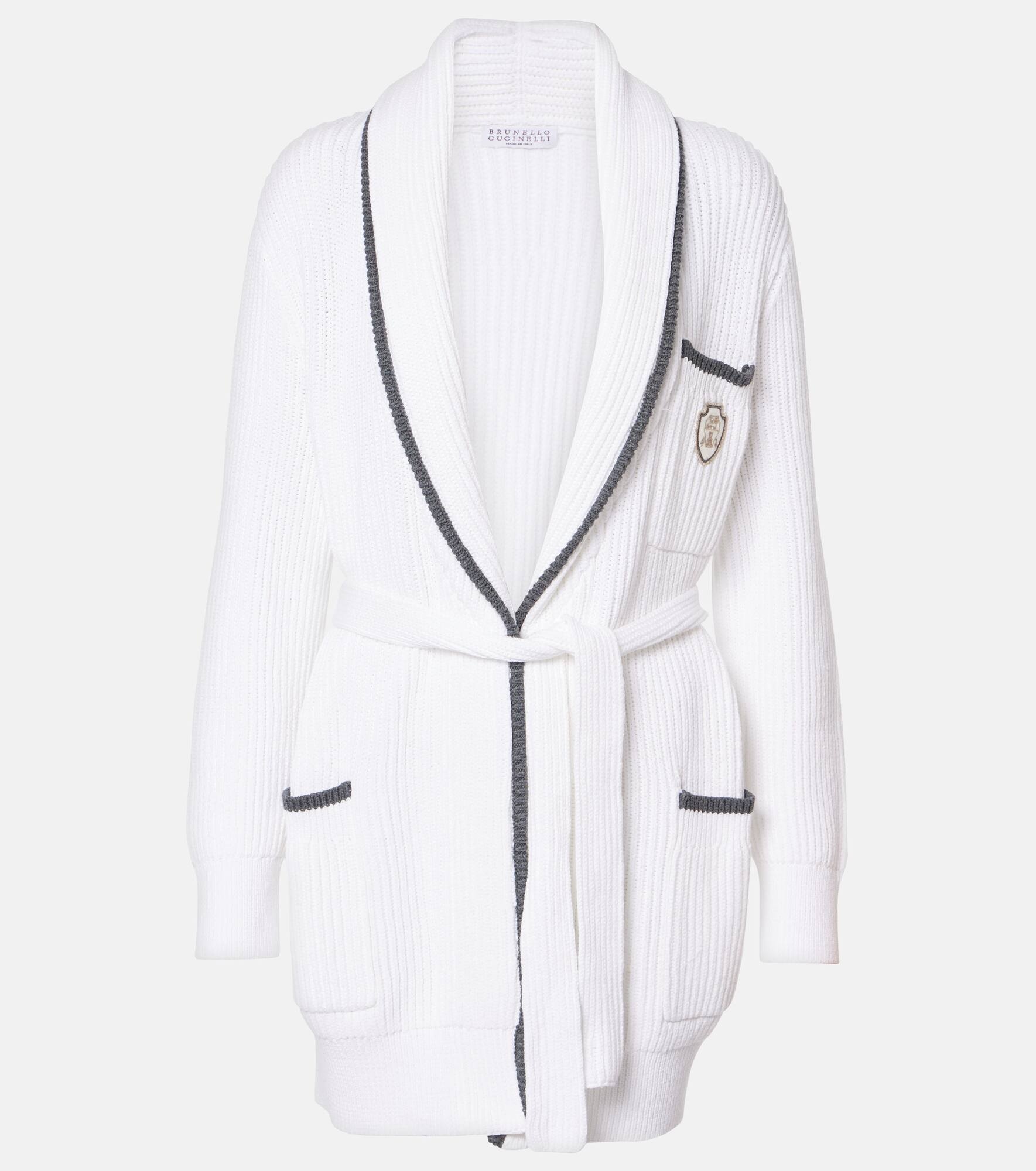 Brunello Cucinelli's designs are created in Solomeo, a medieval hamlet whose art and traditions are woven into the house's every fiber. Crafted in Italy from pure cotton, this cardigan is cut to a relaxed fit. Product Details - Material: 100% cotton - Care instructions: hand wash - Made in Italy - Designer color name: Bianco+Piombo - Detachable band - Pockets: slit pockets - Item number: P01016063 Size & Fit - True to size - Dropped shoulders - Designed for a loose fit - Stretchy fabric - Falls below the hip - The model seen in the picture is 178cm-5'10" and wearing a size XS