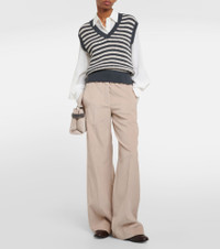 Product Details - Material: 98% cotton, 2% elastane - Care instructions: dry clean - Made in Italy - Designer color name: Feather - Elasticated waistband - Belt loops - Pockets: side slit pockets - Item number: P00873330 Size & Fit - Fits large to size - we recommend trying one size smaller - Elasticated waist - Non-stretchy fabric - Wide-leg - High-waisted - The model seen in the picture is 178cm-5'10" and wearing a size IT 38