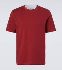 This Brunello Cucinelli T-shirt is a wardrobe staple for effortless layering on a wide range of looks. Crafted from cotton jersey, the garment is finished with contrasting trims. Product Details - Material: 100% cotton - Care instructions: machine wash at 30 degrees - Made in Italy - Designer color name: Ciliegia+Perla - Item color: red, white - Collar: crewneck - Item number: P01138473 Size & Fit - True to size - Straight fit - Non-stretchy fabric - Falls to the hip - The model in the picture is 185cm-6'1" and wearing a size L