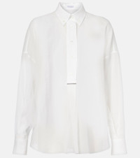 Product Details - Material: 100% cotton - Care instructions: dry clean - Made in Italy - Designer color name: Bianco - Closure: button-down - Item number: P01015968 Size & Fit - True to size - Dropped shoulders - Semi-sheer - Designed for a loose fit - Non-stretchy fabric - Falls below the hip - The model seen in the picture is 178cm-5'10" and wearing a size XS