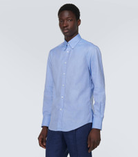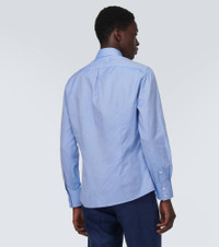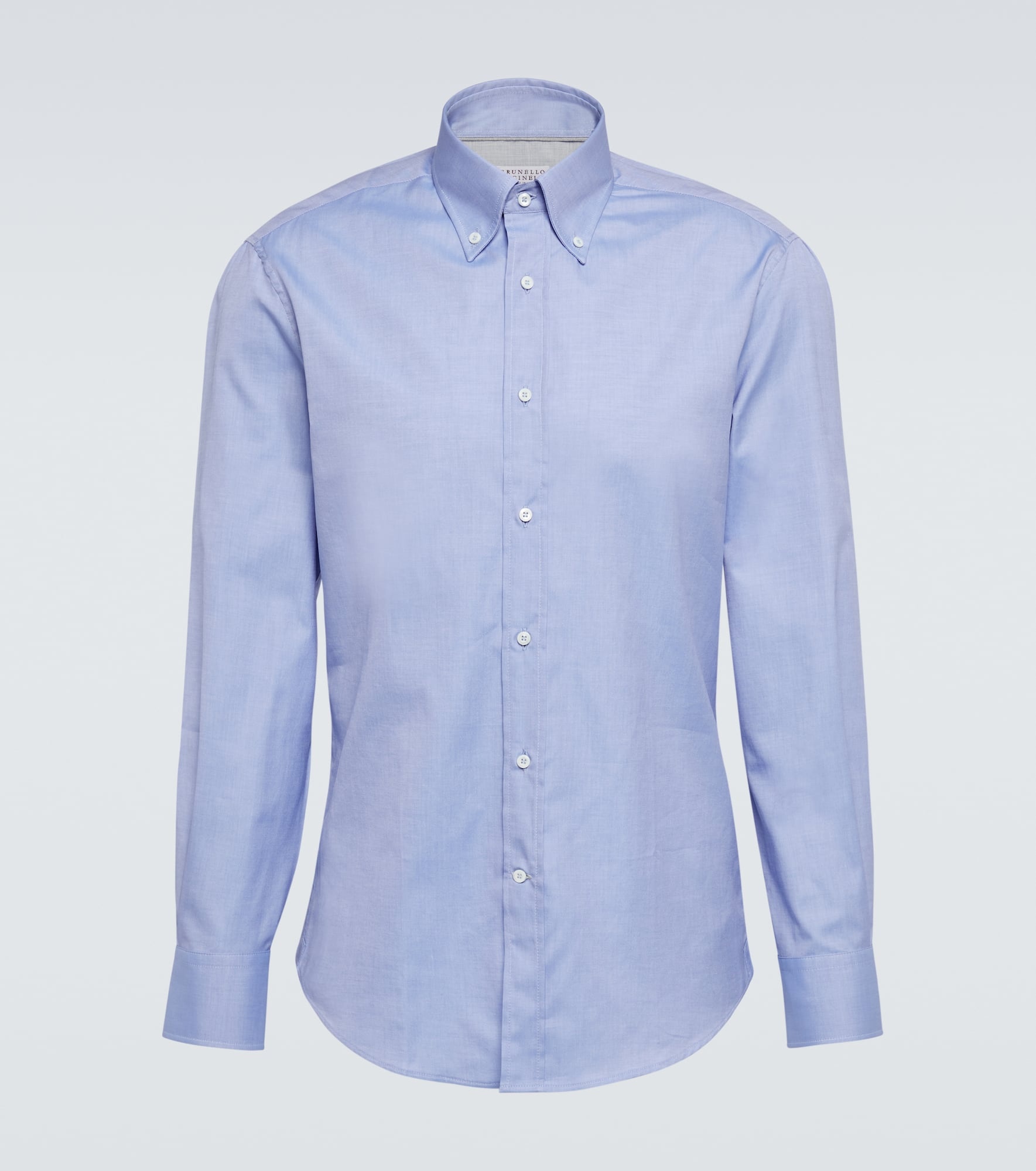 Upgrade your office wardrobe with exceptional shirting from Brunello Cucinelli. Made from pure cotton, this slim-fit style has a pointed button-down collar and a curved hem. Product Details - Made in Italy - Material: 100% cotton - Closure: buttoned front - Designer color name: Sky Blue - Care instructions: machine wash at 30 degrees - Item number: P00830217 Size & Fit - True to size - With pleats in the back - Slim fit - Darts in the back - Mid-weight material - Falls below the hip - The model in the picture is 185cm-6'1" and wearing a size M