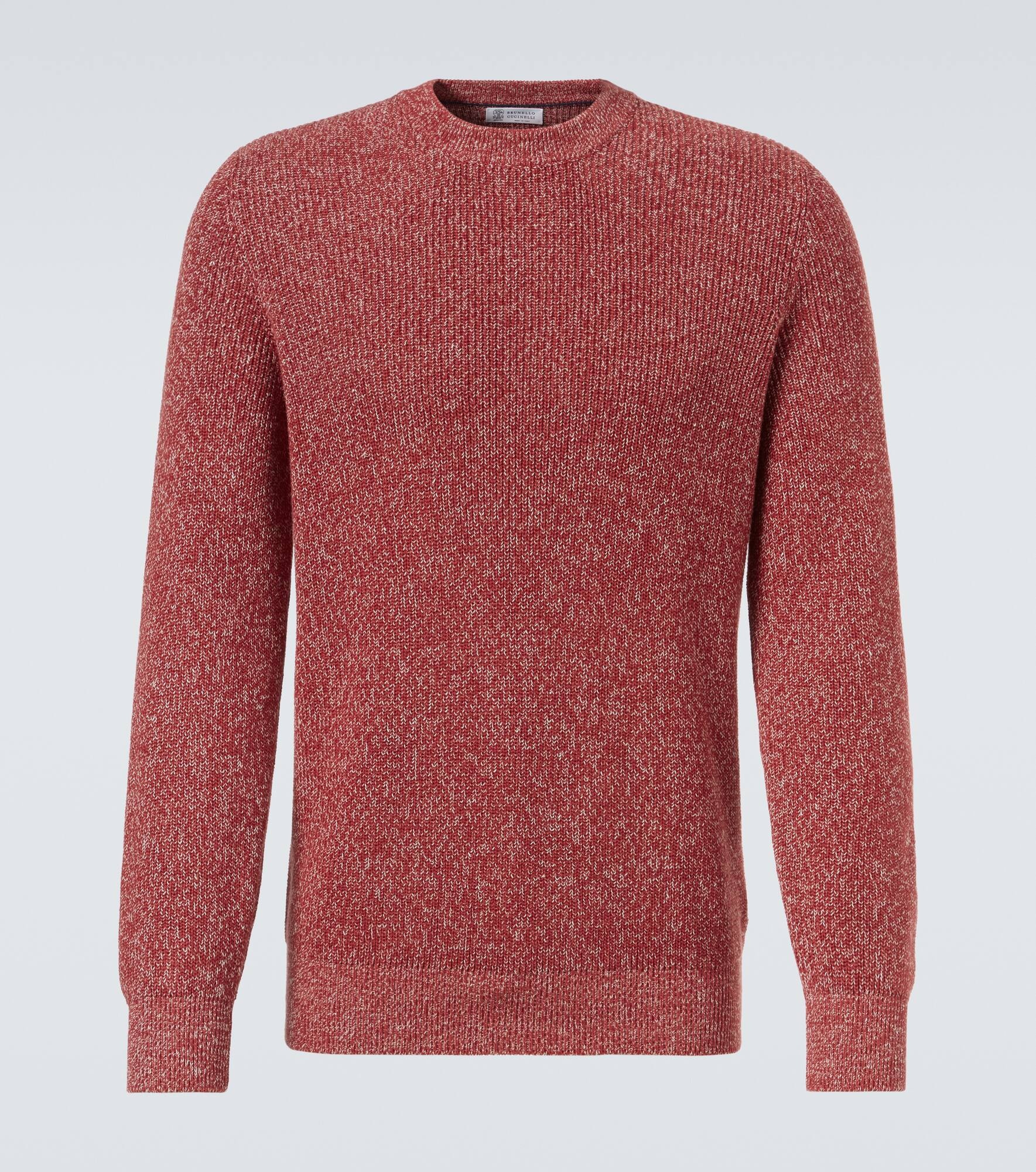 Brunello Cucinelli's designs are created in Solomeo, a medieval hamlet whose art and traditions are woven into the house's every fiber. This sweater is knitted from melange cotton with a classic crewneck and ribbed trims. Product Details - Material: 100% cotton - Care instructions: hand wash - Made in Italy - Designer color name: Cherry+Corda - Collar: crewneck - Cuff: ribbed - Hem: ribbed - Item number: P01041880 Size & Fit - True to size - Straight fit - Slightly stretchy fabric - Falls to the hip - The model in the picture is 185cm-6'1" and wearing a size IT 50