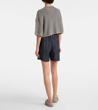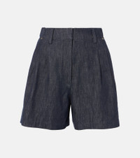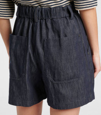 Every capsule wardrobe needs a classic pair of denim shorts, like this pair from Brunello Cucinelli. The wear-anywhere Bermuda style is crafted in Italy and is complete with pleats on the legs. Product Details - Material: 100% cotton - Care instructions: machine wash at 30 degrees - Made in Italy - Designer color name: Blu - Closure: zip and hook fastening - Pockets: side slit pockets, back pockets - Belt loops - Item number: P01016118 Size & Fit - True to size - Elasticated waist - Non-stretchy fabric - Wide-leg - The model seen in the picture is 178cm-5'10" and wearing a size IT 40