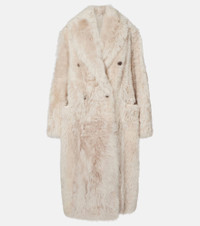 Brunello Cucinelli's designs are created in Solomeo, a medieval hamlet whose art and traditions are woven into the house's every fiber. Crafted from plush, warm shearling with a double-breasted front, this elegant coat makes for an enveloping layer. Product Details - Material: 100% shearling - Care instructions: specialist clean - Made in Italy - Designer color name: Sesamo - Item color: beige - Closure: buttoned front - Pockets: slit pockets - Trim: 100% leather - Lining: 74% acetate, 26% silk - Item number: P01091791 Size & Fit - True to size - Dropped shoulders - Designed for a loose fit - Non-stretchy fabric - Height of model is 178cm-70" and wears a size IT 40