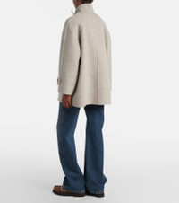 Hand-crafted pea coat in virgin wool and cashmere double cloth with shiny cuff details