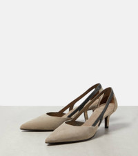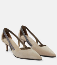 Embellished suede slingback pumps