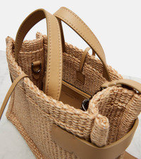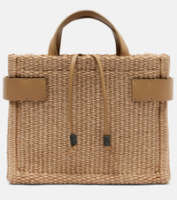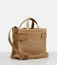 Leather-trimmed raffia shoulder bag Beige