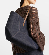 Leather-trimmed denim tote Dark denim