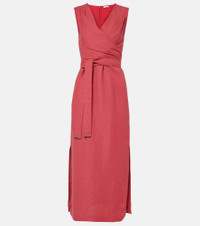 Viscose and linen fluid twill wrap-effect dress with monili