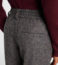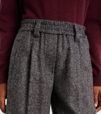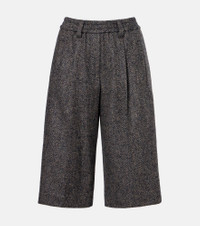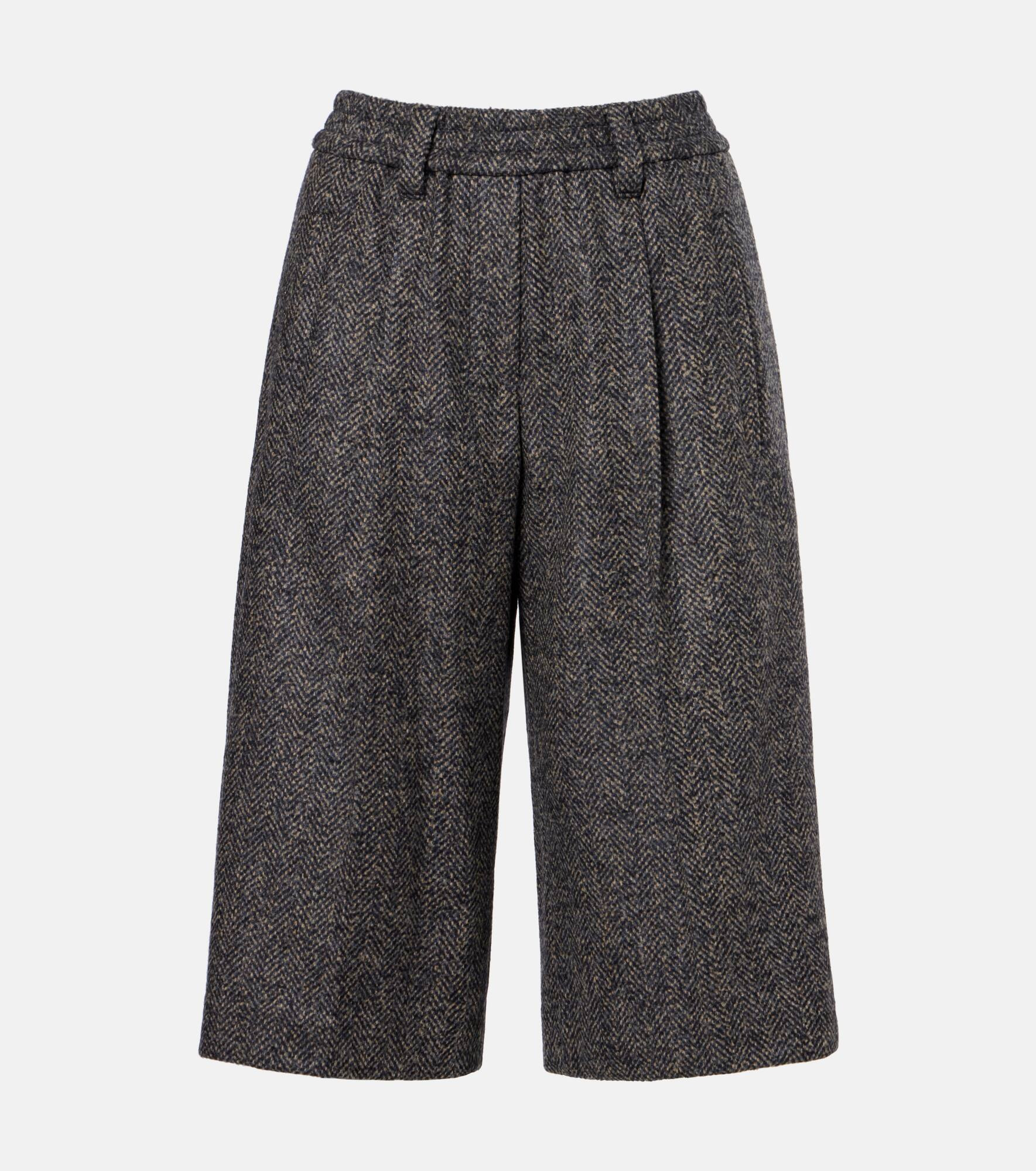 Brunello Cucinelli's designs are created in Solomeo, a medieval hamlet whose art and traditions are woven into the house's every fiber. These refined shorts are made from a wool blend for optimal softness and feature a classic herringbone pattern. Product Details - Material: 73% wool, 27% polyamide - Care instructions: dry clean - Made in Italy - Designer color name: Ocra/Blu - Item color: gray - Lining: 65% acetate, 35% polyester - Insert: 100% brass - Elasticated waistband - Pockets: side slit pockets, back pockets - Belt loops - Item number: P01083437 Size & Fit - Fits large to size - we recommend trying one size smaller - Non-stretchy fabric - Wide-leg - Height of model is 175cm-69" and wears a size IT 38