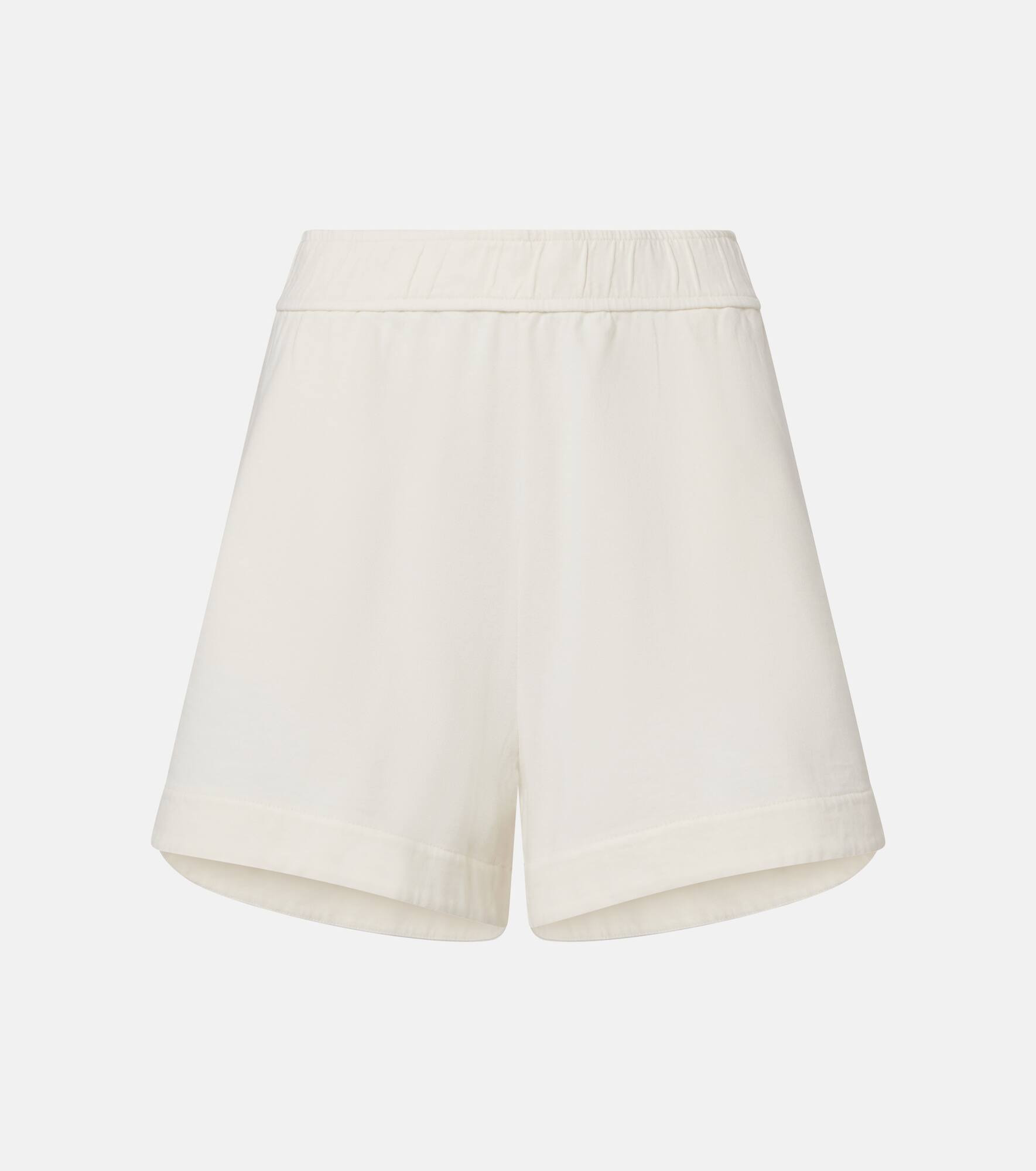 Made in Italy, the high-rise cotton shorts from Brunello Cucinelli feature an elasticated waistband and side-slit pockets – a clean, effortless design that reflects the brand’s refined approach to everyday dressing. Product Details - Material: 100% cotton - Care instructions: hand wash - Made in Italy - Designer color name: Panama - Item color: white - Material II: 74% acetate, 26% silk - Elasticated waistband - Pockets: side slit pockets - Item number: P01054509 Size & Fit - True to size - Slightly stretchy fabric - Wide-leg - Sits low on the hips - The model seen in the picture is 178cm-5'10" and wearing a size XS