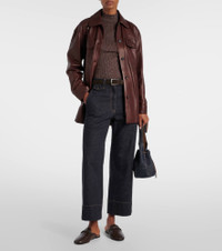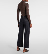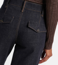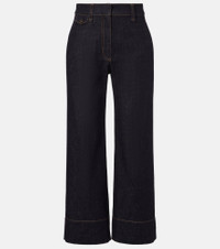 These Brunello Cucinelli jeans are able to elevate even the simplest of the looks with their refined aesthetic. Crafted in Italy from dark washed denim, this pair features a high-rise, a wide-leg silhouette, and contrasting topstitching. Product Details - Material: 100% cotton - Care instructions: machine wash at 30 degrees - Made in Italy - Designer color name: Blu - Item color: blue - Contains non-textile parts of animal origin - Lining: 100% cotton - Closure: zipper fly, button and hook fastenings - Pockets: slant pockets, flap pockets - Belt loops - Item number: P01054247 Size & Fit - Fits large to size - we recommend trying one size smaller - Non-stretchy fabric - Wide-leg - High-rise - The model seen in the picture is 178cm-5'10" and wearing a size IT 38