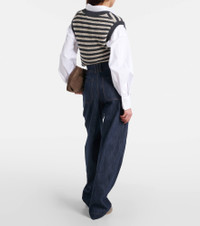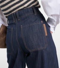 Product Details - Material: 86% cotton, 9% viscose, 2% polyester, 2% polyamide, 1% elastane - Belt loops - Details: 100% leather - Contains non-textile parts of animal origin - Lining: 100% cotton - Care instructions: machine wash at 30 degrees - Made in Italy - Designer color name: Blu Argento - Closure: zipper fly, button fastening - Pockets: side slit pockets, back pockets - Item number: P00900302 Size & Fit - Fits large to size - we recommend trying one size smaller - Non-stretchy fabric - Wide-leg - High-rise - The model seen in the picture is 178cm-5'10" and wearing a size IT 40