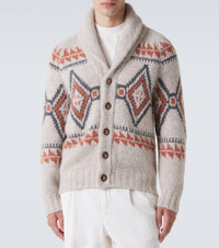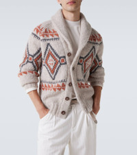 Brunello Cucinelli blends Italian craftsmanship with a refined, contemporary aesthetic across thoughtfully designed wardrobe staples. This jacquard cardigan is made in Italy with a wool blend. The design has a detachable belt. Product Details - Material: 78% alpaca wool, 9% polyamide, 8% wool, 4% cashmere, 1% silk - Care instructions: hand wash - Made in Italy - Designer color name: 9610+4396+079 - Item color: beige, multicolor - Material II: 60% wool, 30% cashmere, 10% silk - Closure: buttoned front - Shawl lapel - Item number: P01095097 Size & Fit - True to size - Straight fit - Slightly stretchy fabric - Falls below the hip - Height of model is 187cm-73.5" and wears a size IT 50