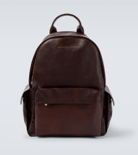 Crafted in Italy with meticulous attention to detail, this Brunello Cucinelli leather backpack adds a touch of luxury to your travels. Multiple compartments keep essentials organized, while adjustable shoulder straps enhance comfort and versatility. Product Details - Material: calf leather - Lining: fabric - Made in Italy - Designer color name: Burgundy - Item color: burgundy - Internal details: internal slot pocket, internal zipped pocket - Closure: zipped top - Top handle, Adjustable shoulder straps - Item number: P01056163 Size & Fit - Height 43cm-17" - Width 33cm-13" - Depth 16cm-6.5" - Length of handles 26cm-10" - Adjustable shoulder strap - Max. length shoulder strap 83cm-32.5"