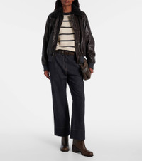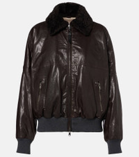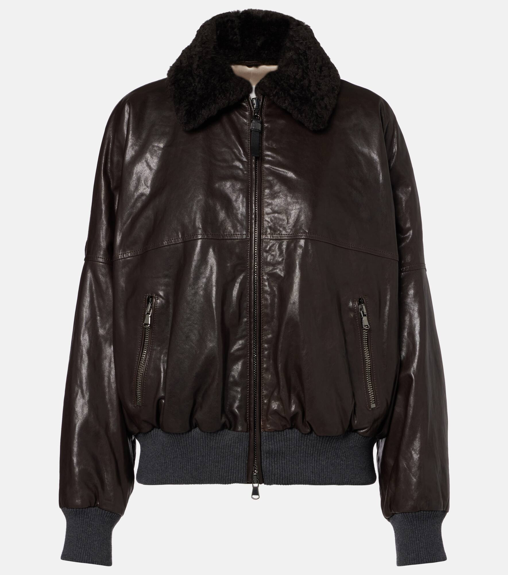 Brunello Cucinelli's designs are created in Solomeo, a medieval hamlet whose art and traditions are woven into the house's every fiber. This leather blouson features a faux fur collar, ribbed-knit details, and side zipped pockets. Product Details - Material: 100% leather - Care instructions: specialist clean - Made in Italy - Designer color name: Coffee - Item color: brown - Lining: 80% acetate, 20% silk - Trim: 100% cashmere - Lining II: 74% acetate, 26% silk - Filling: 100% polyester - Closure: two-way zipped front - Pockets: zipped pockets - Item number: P01083422 Size & Fit - True to size - Dropped shoulders - Designed for a loose fit - Elasticated hem - Non-stretchy fabric - Falls to the hip - The model seen in the picture is 178cm-5'10" and wearing a size IT 40