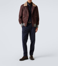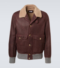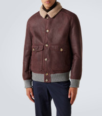 Nubuck-effect shearling aviator jacket with cashmere knit inserts